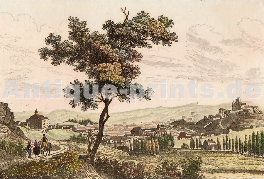 France. Original steel engraving drawn by Harding, engraved by J. Cousen. 1834. Good condition. Hand-coloured. 15x10cm. Mounted.
