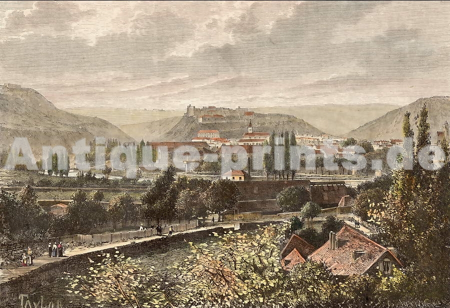 France. Gravure sur acier, gravée par J. Brown d´après B. West. 1851. Très bon état. Bordure décorative. Aquarellée à la main. 16,5x11,5cm. Montée sous passe-partout.