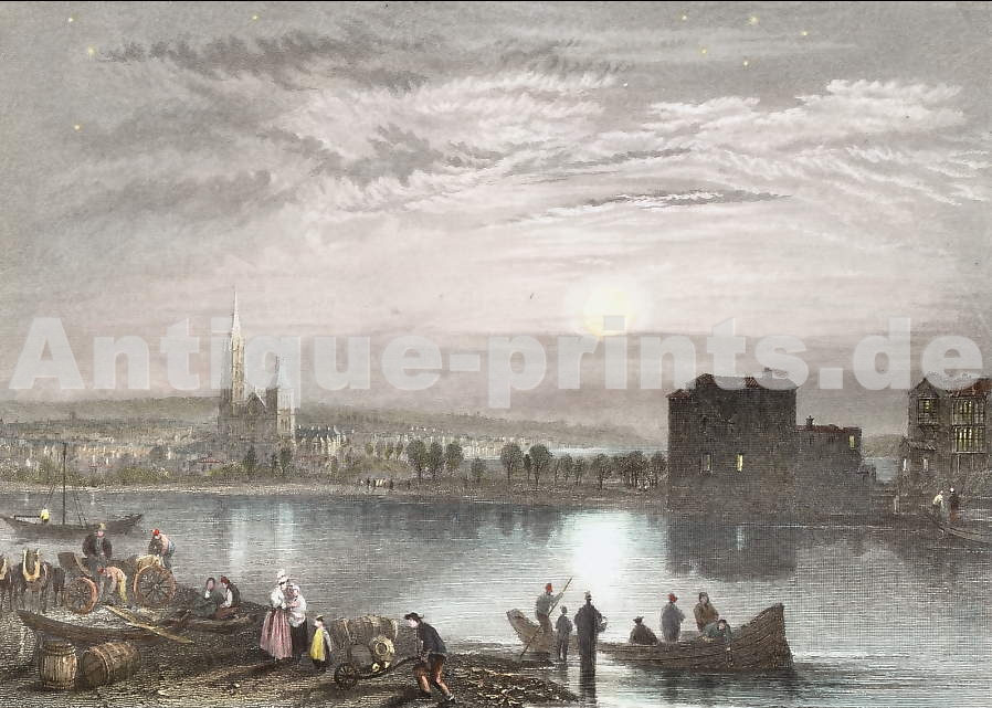 France. Gravure sur acier, gravée par T. Turnbull d´après T. Allom. 1840. Très bon état. Aquarellée à la main. 19x12,5cm. Montée sous passe-partout.