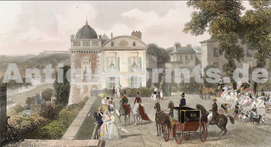 France. Original steel engraving, engraved by J. Outhwaite after K. Girardet and A. Morel Fatio. 1837. Very good condition. Hand-coloured. 13,5x9,5cm. Matted.