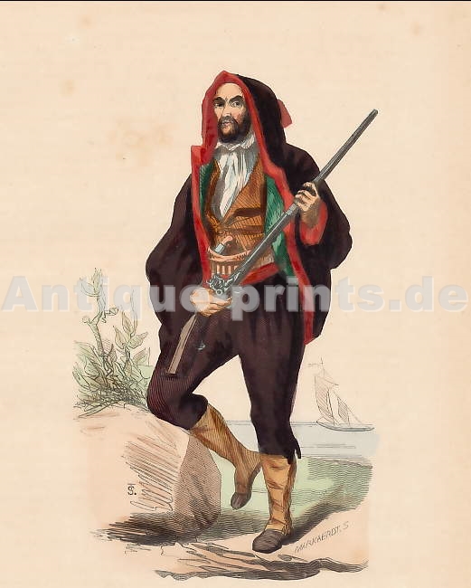 Afghanistan. Gravure sur acier. 1865. Très bon état. Aquarellée à la main. 15,5x10cm. Montée sous passe-partout.