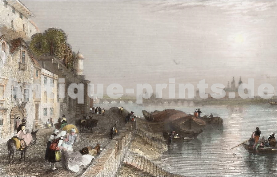 France. Original steel engraving drawn by Samuel Prout, engraved by T. Barber. 1832. Very good condition. Small margins, as issued. Hand-coloured. 14,5x9,5cm. Matted.
