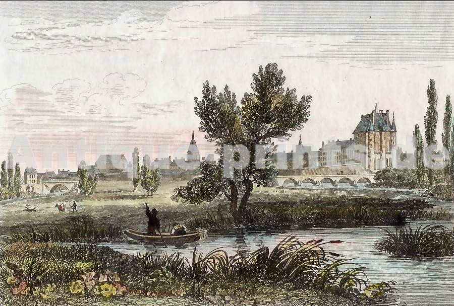 France. Original wood engraving drawn by Karl Girardet, engraved by Whiehead. 1877. Good condition. Hand-coloured. 18x11,5cm. Matted.