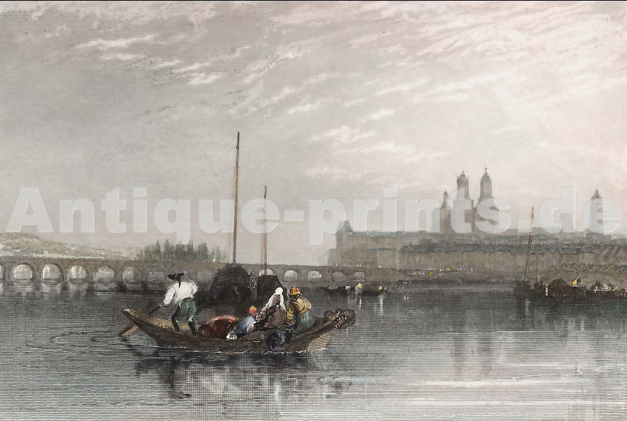 France. Gravure sur acier imprimée en couleurs, gravée par W. French d´après Asselineau. ca 1850. Très bon état. Aquarellée à la main. 18x14cm. Montée sous passe-partout.