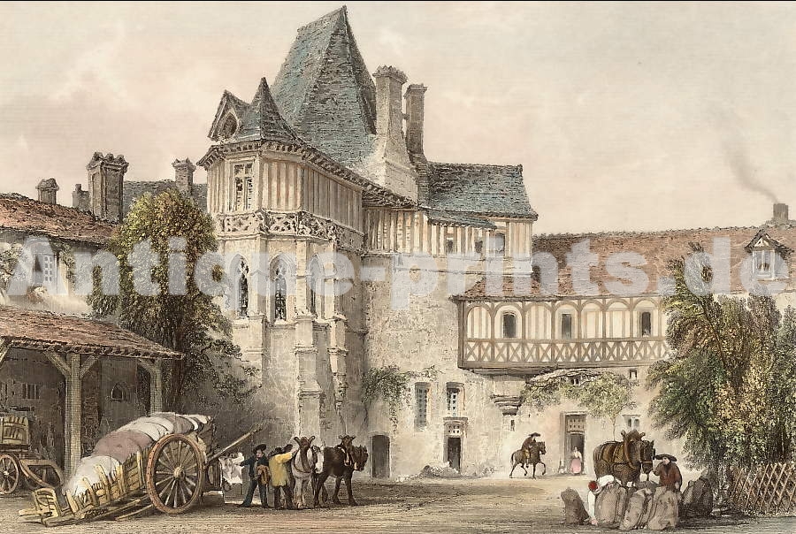France. Original steel engraving drawn by Samuel Prout, engraved by T. Barber. 1832. Very good condition. Small margins, as issued. Hand-coloured. 14,5x9,5cm. Matted.