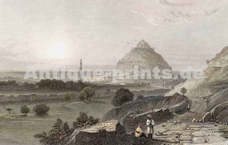 Indien. Stahlstich (nach T. C. Dibden). Bibliograph. Institut in Hidlburghausen. 1840. Sehr guter Zustand. Handkoloriert. 15x9,5cm. Mit Passepartout.