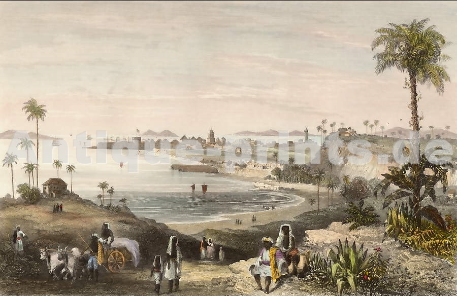 Altes Griechenland. Stahlstich von H. Winkles nach G. Heck. 1849. Guter Zustand. Kein Titel. Handkoloriert. 25,5x20cm. Mit Passepartout.