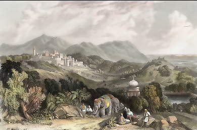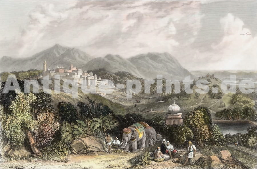 India. Original steel engraving, engraved by H. Winkles after G. Heck. 1849. Very good condition. No title on the plate. Hand-coloured. 25x20cm. Matted.