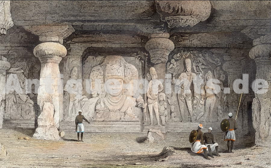 Herculaneum. Original copper engraving, engraved by C. Oratij after N. Vanni. 1762. Very good condition, wrinkles in paper. Printed on the reverse side. Hand-coloured (watercolour and gouache). 16,5x10,5cm. Matted.