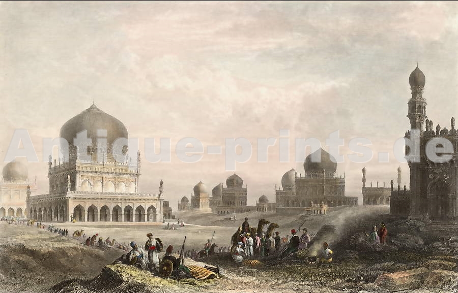 India. Original steel engraving. 1858. Very good condition. Hand-coloured. 18,5x13cm. Matted.
