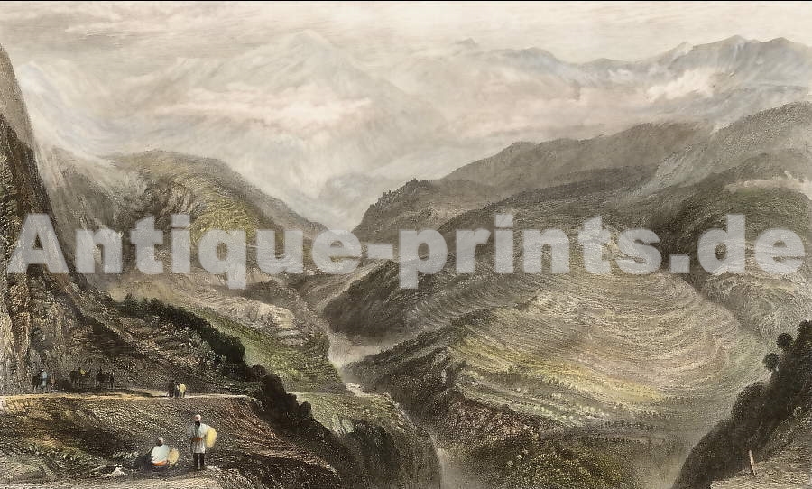 Switzerland. Original steel engraving drawn by W. H. Bartlett, engraved by T. Jeavons. 1839. Very good condition. Modern hand-colouring. 17,5x11,5cm. Matted.
