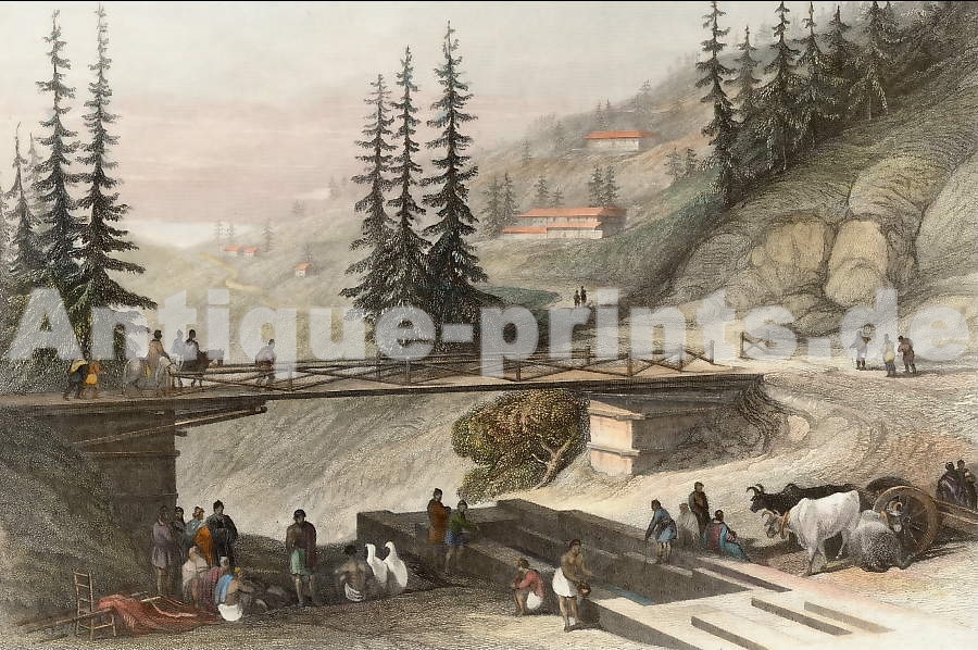India. Original steel engraving, engraved by F. J. Havell after J. D. Harding. 1837. Very good condition. Hand-coloured. 20x12,5cm. Matted.