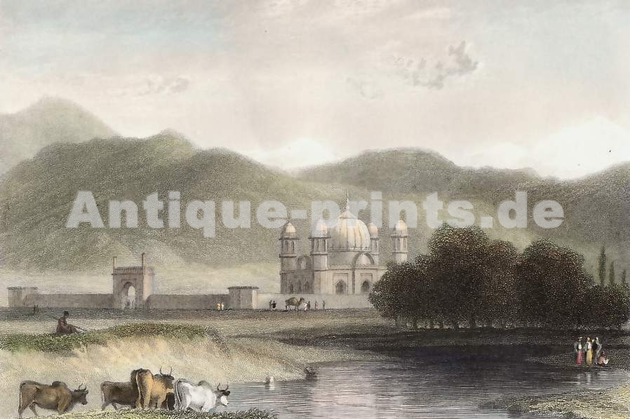 India, Original steel engraving, engraved by J. C. Varrall after T. C. Dibden. 1858. Very good condition. Hand-coloured. 19x12,5cm. Matted.