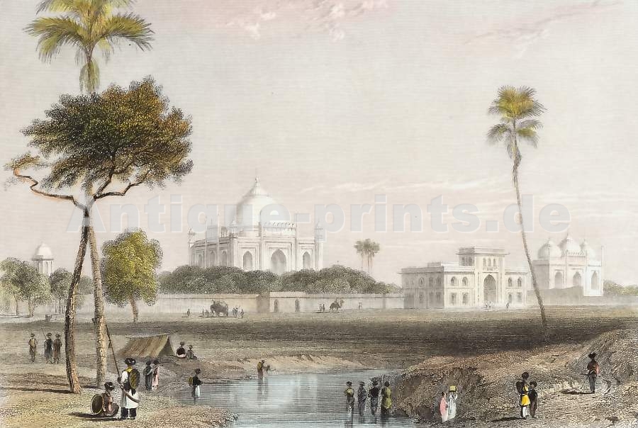 India. Original steel engraving, engraved by A. H. Payne after D. Roberts. 1851. Very good condition. Decorative border. Hand-coloured. 17,5x11,5cm. Matted.
