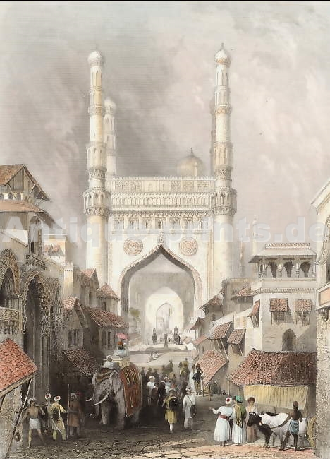 Inde, Gravure, India, Indien, Stiche, Engraving, Charminar, Hyderabad
