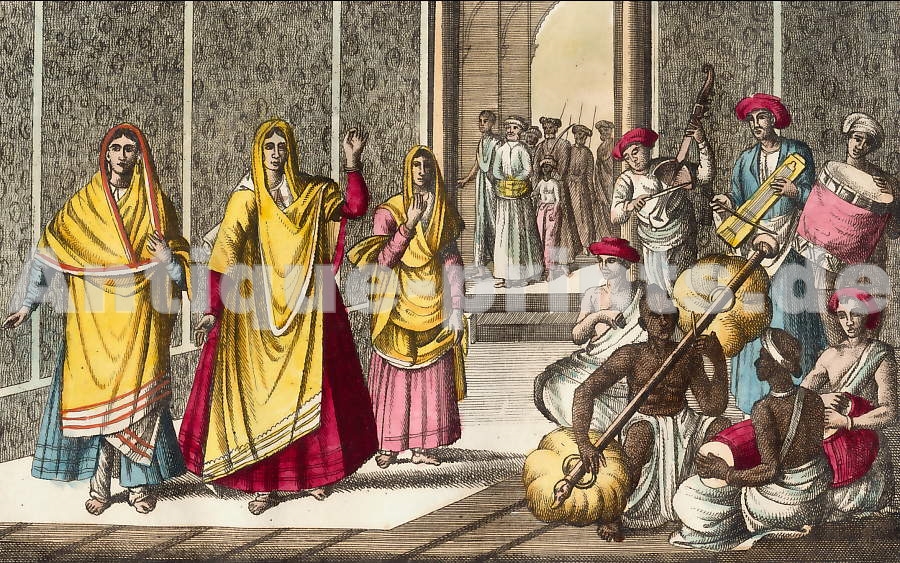 India. Original wood engraving, engraved by A. Kohl after T. Taylor. 1883. Good condition. Hand-coloured. 19x13cm. Matted.