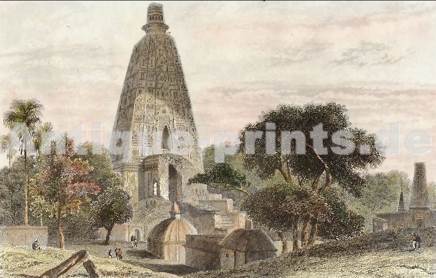India. Original wood engraving, engraved by A. Kohl after P. Langlois. 1883. Light foxing in the low margin. Hand-coloured. 19x13cm. Matted.