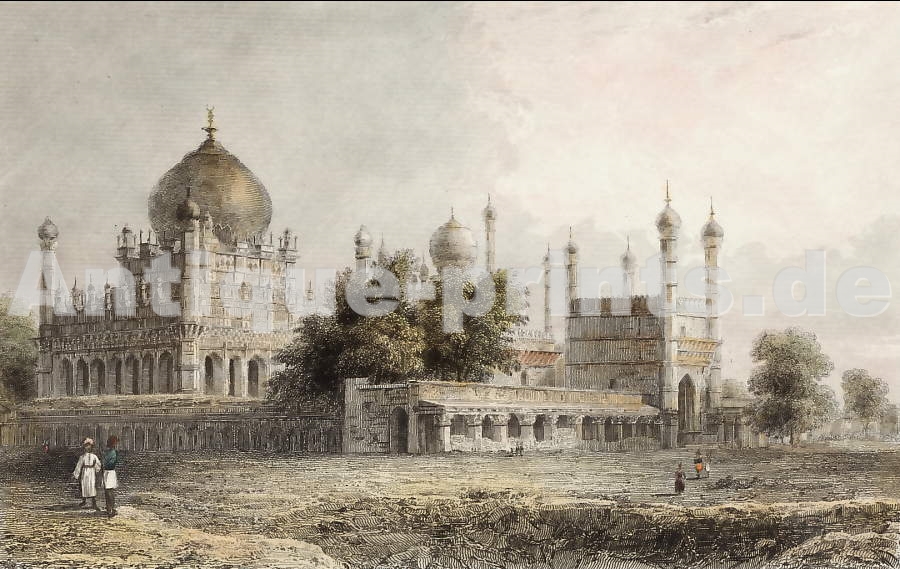 Georgia. Original steel engraving, engraved by Tiozzo. 1838. Very good condition. Hand-coloured. 15,5x9cm. Matted.