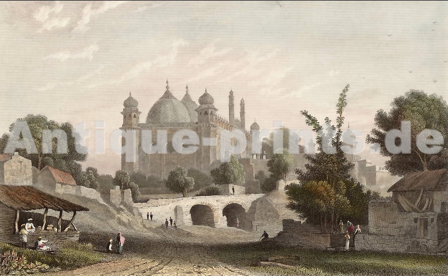 India. Original wood engraving, engraved by L. Lisbet. 1846.Very good condition. Hand-coloured. 19x11cm. Matted.