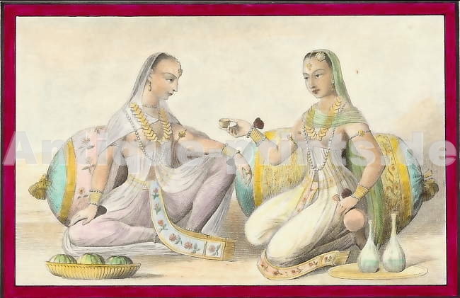 Persia. Original wood engraving drawn by E. Breton. 1846. Very good condition. Hand-coloured. 16x10cm. Matted.