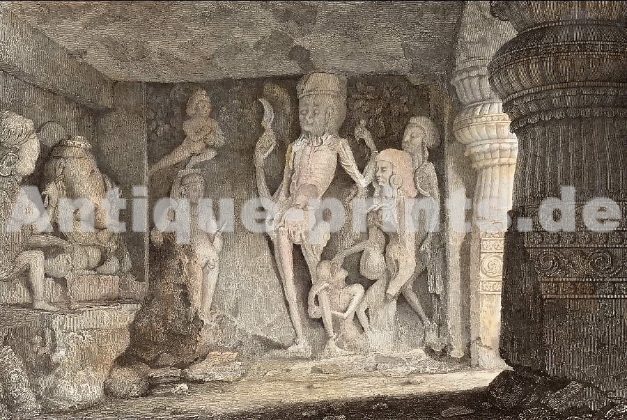 India. Original steel engraving, engraved by M. J. Starling after W. Daniell. 1834. No title on the plate. Good condition. Hand-coloured. 14,5x10cm. Matted.