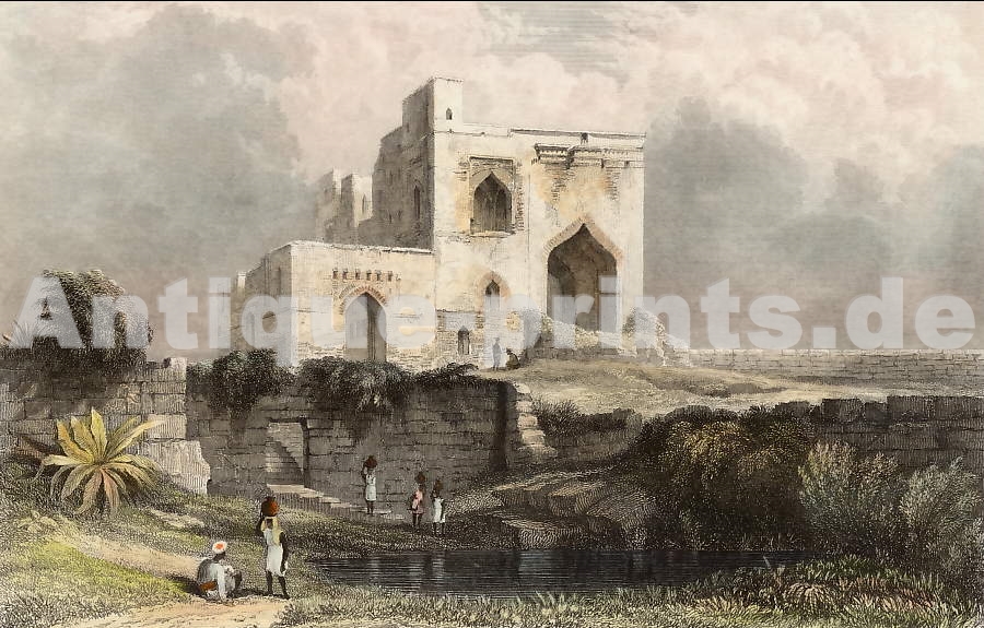 India. Original steel engraving (after T. C. Dibden). Bibliograph. Institut in Hidlburghausen. 1840. Very good condition. Hand-coloured. 15x9,5cm. Matted.