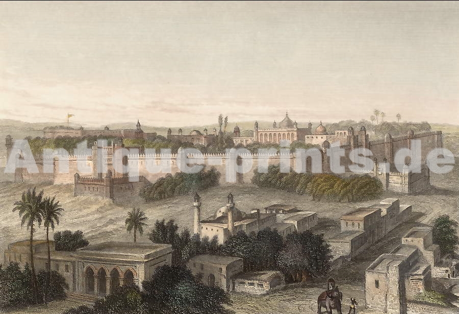 India. Original steel engraving drawn by S. Prout, after a sketch by R. Elliot, engraved by T. Jeavons. 1833. Very good condition. Hand-coloured. 18,5x11,5cm. Matted.