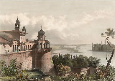 Wales. Original wood engraving, engraved by Hildibrand after P. Benoist. 1879. Foxing in the margins. Hand-coloured. 19x13cm. Matted.