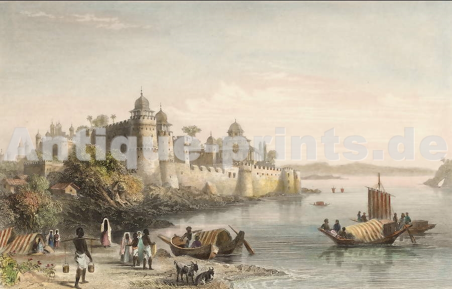 India. Original steel engraving, engraved by R. Wallis after W. Purser. 1836. Very good condition. Hand-coloured. 11,5x8,5cm. Matted.
