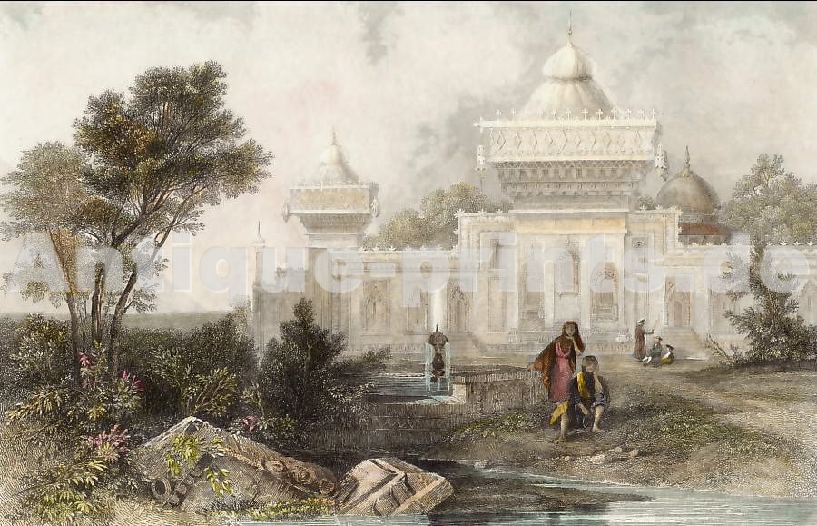 Turkey. Original steel engraving drawn by A. Geyer, engraved by W. French. 1853. Light mark in the sky, otherwise good condition. Hand-coloured. 16,5x12cm. Matted.