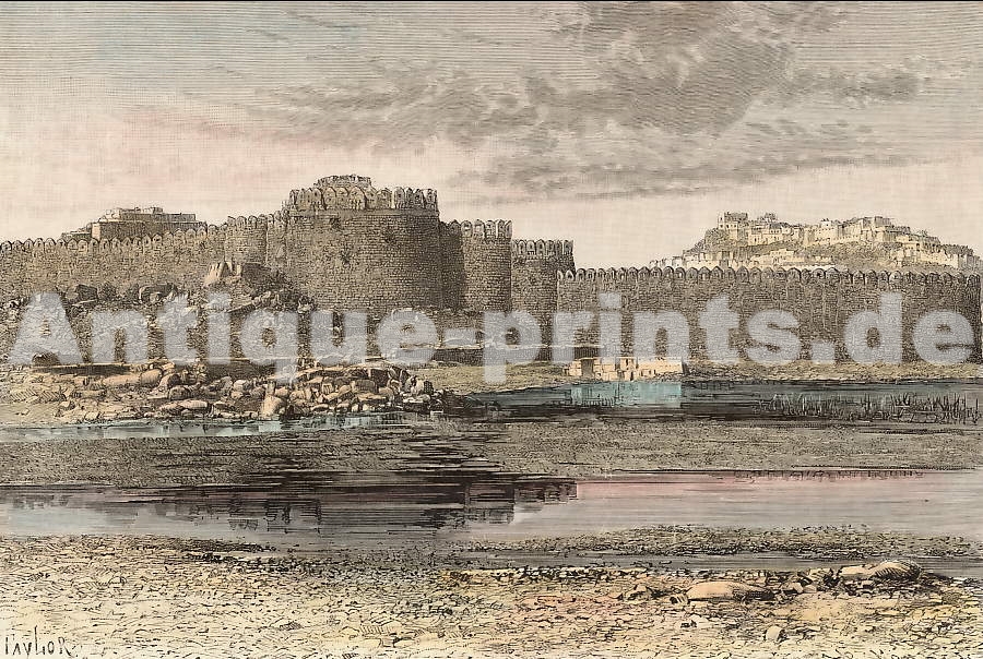 Inde. Gravure sur bois, gravée par C. Bertrand d´après T. Taylor. 1883. Très bon état. Aquarellée à la main. 19x13cm. Montée sous passe-partout.