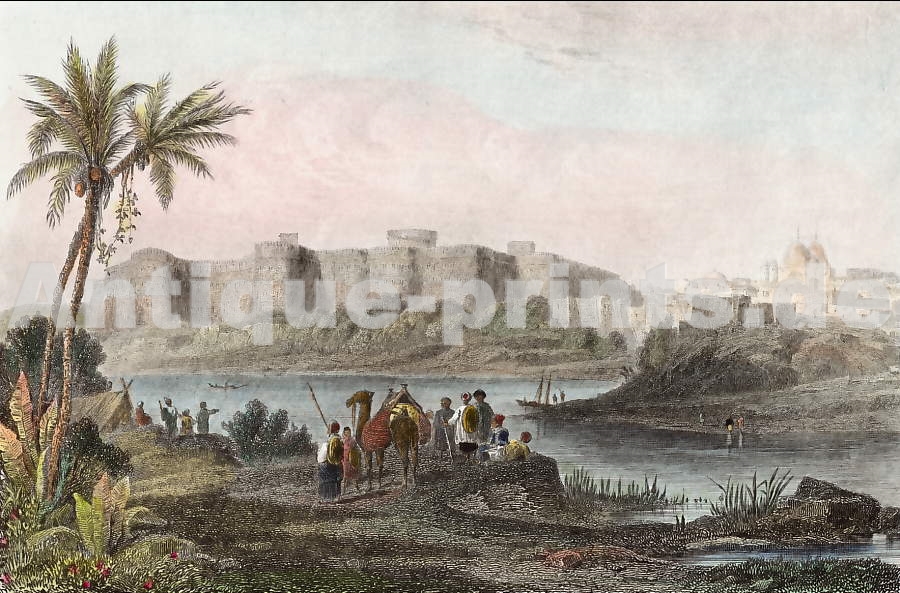 Allemagne. Gravure sur acier. 1850. Très bon état. Bordure décorative. Aquarellée à la main. 9x7cm. Montée sous passe-partout.
