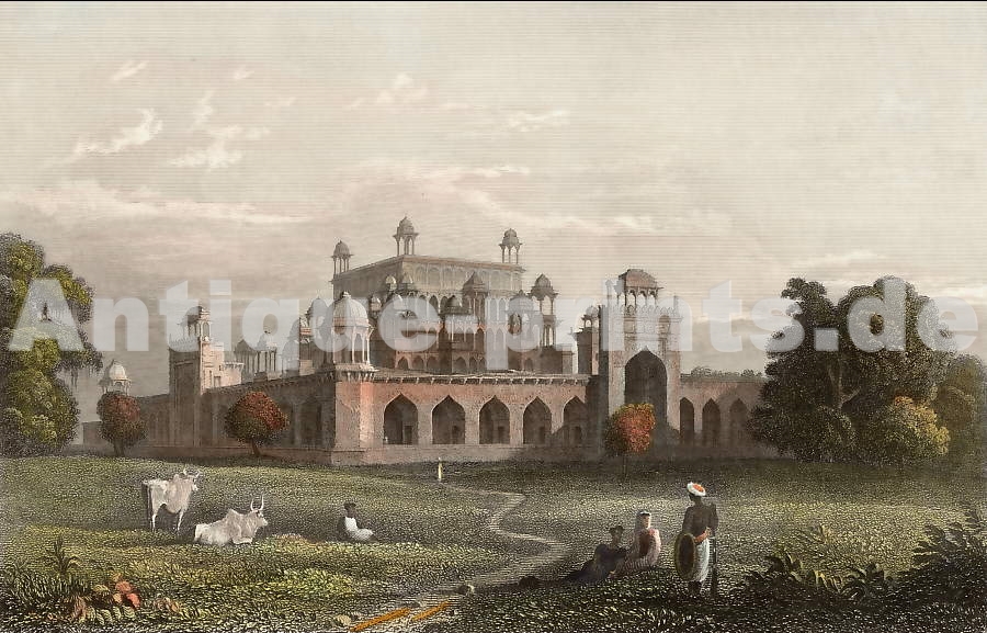 India. Original steel engraving drawn by S. Prout, after a sketch by R. Elliot, engraved by T. Jeavons. 1833. Very good condition. Hand-coloured. 18,5x11,5cm. Matted.