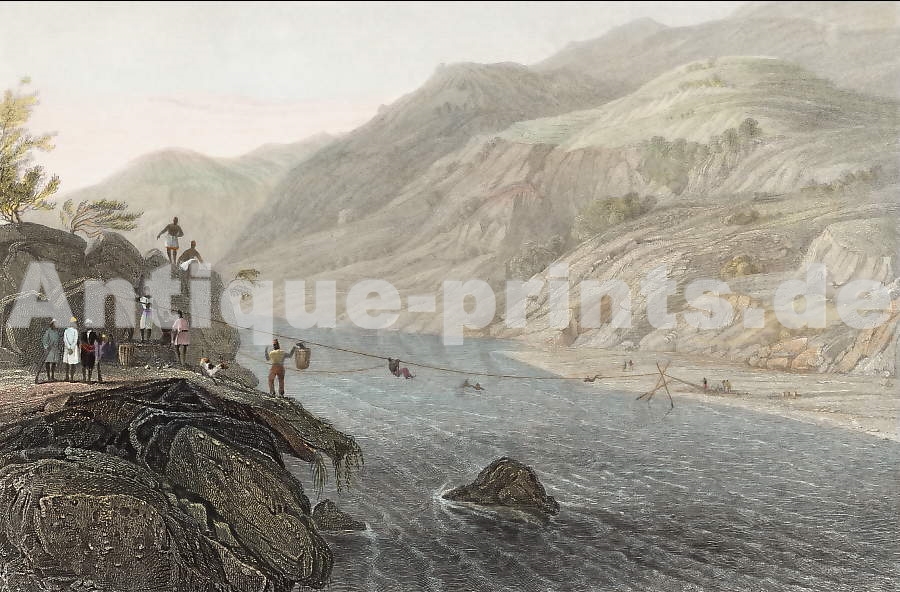 Jordanie. Gravure sur acier, gravée par E. Rouargue (d´après D. Roberts). 1852. Très bon état. Aquarellée à la main. 16,5x11,5cm. Montée sous passe-partout.