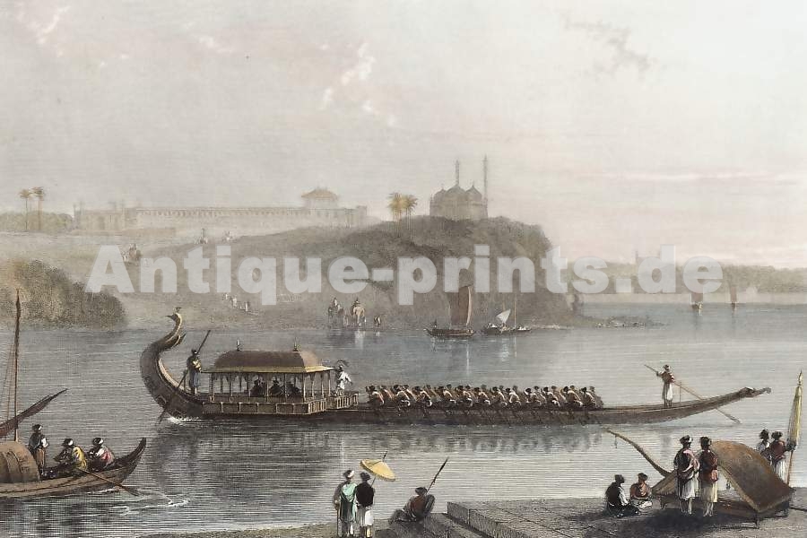 South America. Original steel engraving drawn by Philippoteaux, engraved by Pierre. 1859. Overall age toning, light marks of texte. Original hand-colouring. 16,5x11,5cm. Matted.