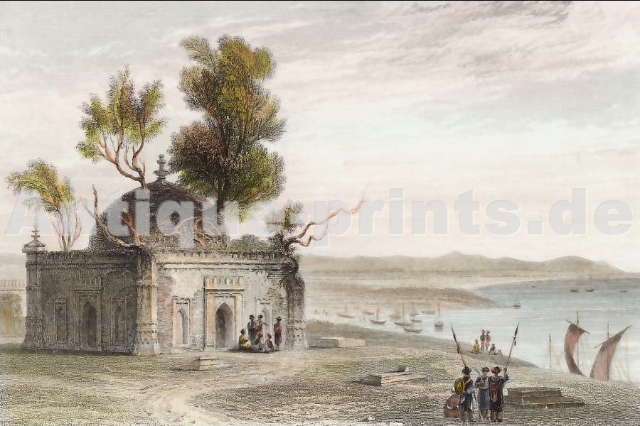 Singapore. Original steel engraving drawn by C. Graham, engraved by A. H. Payne. ca 1840. Very good condition. Modern hand-colouring. 16x10,5cm. Matted.