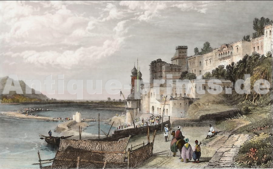India. Original steel engraving drawn by T. S. Boys, after a sketch by R. Elliot, engraved by W. J. Coole. 1834. Very good condition. Hand-coloured. 18x11cm. Matted.
