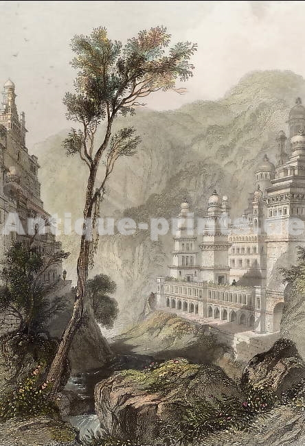 Inde. Gravure sur acier, gravée par Finden d´après T. C. Dibden. 1839. Très bon état. Aquarellée à la main. 14x10cm. Montée sous passe-partout.