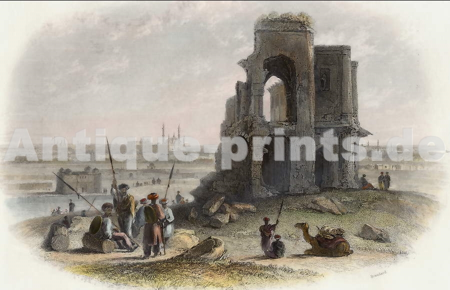 India. Original steel engraving drawn by Callow, engraved by Thomas. 1839. Good condition. Hand-coloured. 12x8,5cm. Matted.