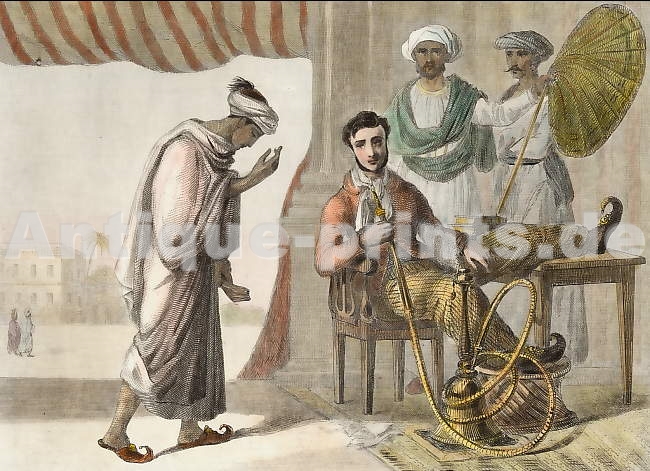 Orientalisme. Gravure sur acier imprimée en couleurs, gravée par A. H. Payne d´après H. Lorrent. ca 1850. Très bon état. Aquarellée à la main. 21,5x14cm. Montée sous passe-partout.
