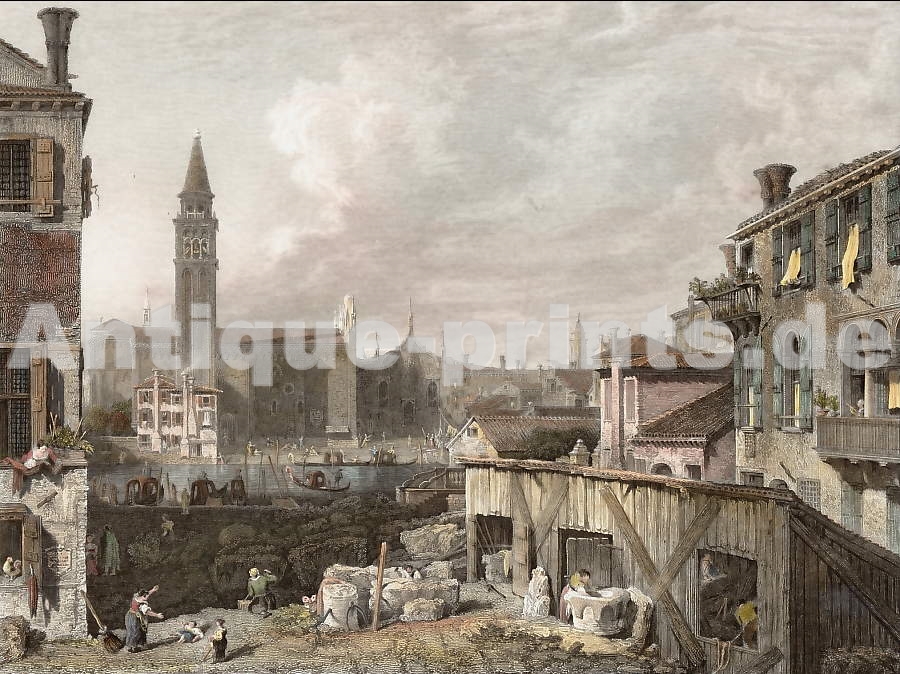 Italien. Stahlstich von Lemaître nach Léveil. 1850. Guter Zustand. Handkoloriert. 13,5x9cm. Mit Passepartout.