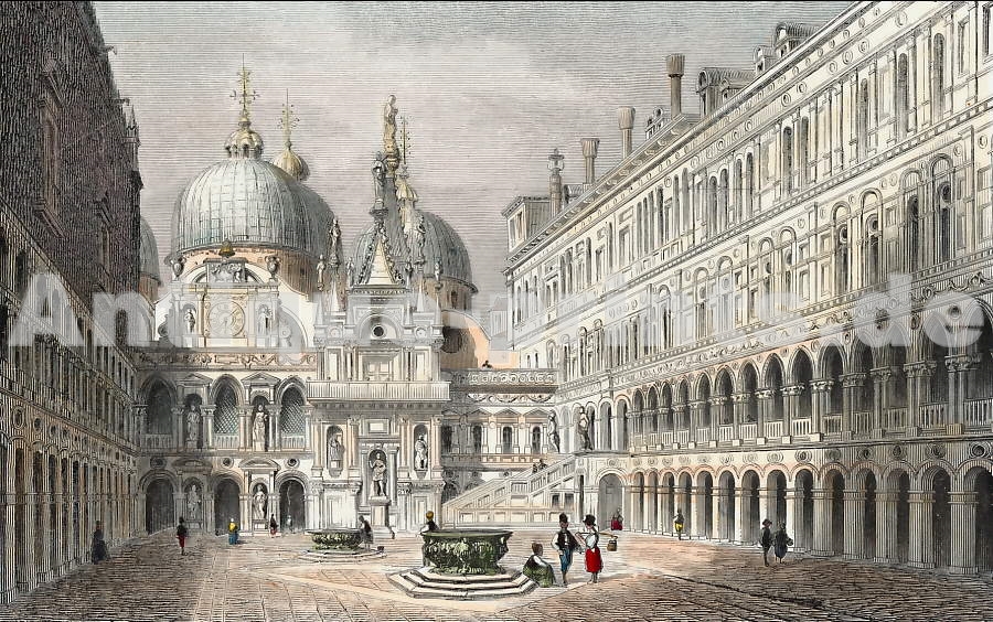 Germany. Original steel engraving, engraved by L. Oeder after H. Merz. ca 1850. Very good condition. Hand-coloured. 10x6cm. Matted.