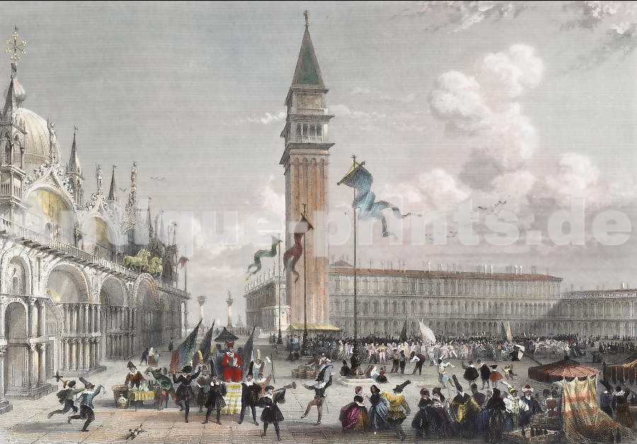 Italie. Gravure sur bois. 1886. Très bon état. Aquarellée à la main. 15,5x11cm. Montée sous passe-partout.