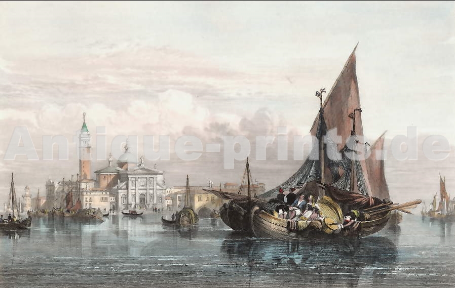 Italy. Original steel engraving drawn by Samuel Prout, engraved by J. Tingle. 1829. Small margins, as issued. Very good condition. Hand-coloured. 15x10cm. Matted.