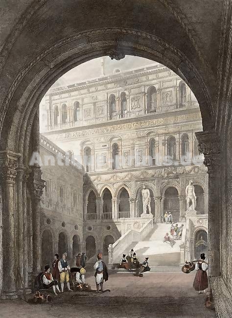 Italie. Gravure sur acier, gravée par R. Wallis d´après S. Prout. 1830. Très bon état. Aquarellée à la main. 14x10cm. Montée sous passe-partout.