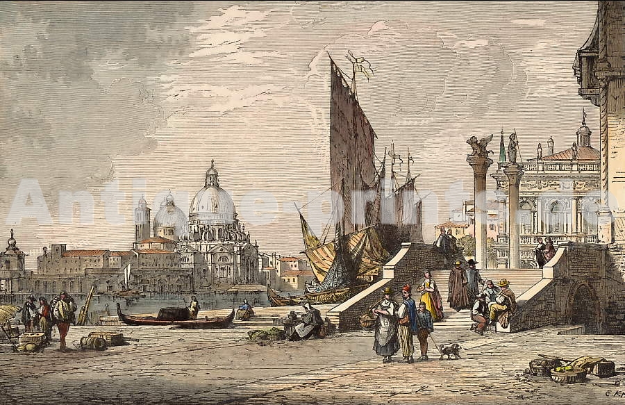 Original steel engraving after an original drawing by D.Cox. ca 1860. Good condition. Hand-coloured. 15x10,4cm. Matted.