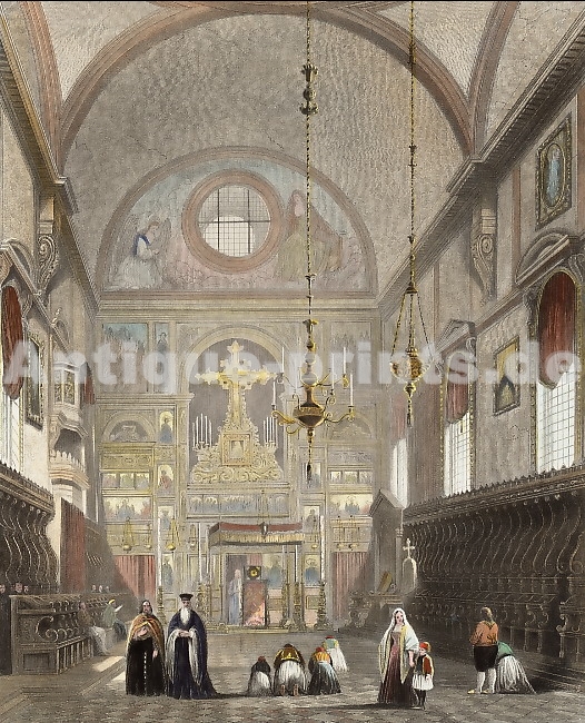 Italie. Gravure sur bois, gravée par Whymper d´après H. Fenn. 1878. Très bon état. Texte au verso. Aquarellée à la main. 23x16,5cm. Montée sous passe-partout.