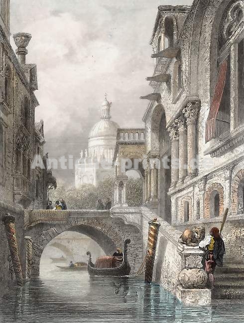 Italie. Gravure sur acier, gravée par R. Wallis d´après S. Prout. 1830. Très bon état. Aquarellée à la main. 14x10cm. Montée sous passe-partout.