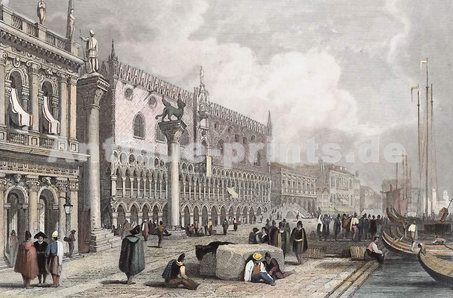 Italie. Gravure sur acier, gravée par J. Outhwaite d´après A. Rouargue. 1854. Très bon état. Aquarellée à la main. 16,5x11cm. Montée sous passe-partout.
