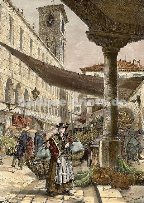 Italie. Gravure sur acier, gravée par J. Outhwaite d´après A. Rouargue. 1854. Très bon état. Aquarellée à la main. 16,5x11cm. Montée sous passe-partout.